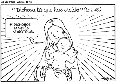 En ese encuentro de familia, Isabel, la prima, dice unas palabras inspiradas por el Espíritu de Dios, que hoy llegan hasta nuestro corazón: “Bendita tú entre las mujeres y bendito el fruto de vientre. Dichosa tú que has creído”. De esa forma expresa perfectamente lo que está viviendo María. La fe hace vivir de otra manera. La fe ayuda a comprender la realidad desde una perspectiva nueva y más profunda. El que vive en la fe, como María, vive bendecido por Dios. Y todo lo que toca y dice se convierte en bendición para el creyente y para los que le rodean. Porque conoce en lo profundo de su corazón que el amor de Dios se ha instalado en nuestro mundo. Que nuestra alegría en esta Navidad sea fruto de la fe gozosa en el Dios que se encarna en Jesús.